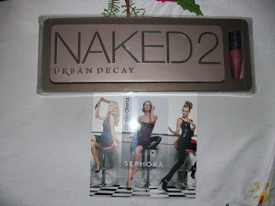 O meu menino deu-me a tão desejada Naked 2, com o seu gloss com aroma mentolado, e um cartão de oferta de 20€ da Sephora. Amei! Quem leu o post sobre a minha wishlist, verificou que eu queria muito esta paleta. A primeira escolha dele era a The Vice Palette, mas estava esgotada. :(