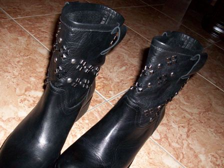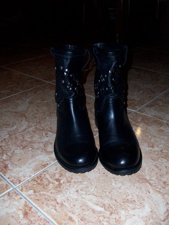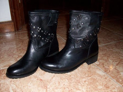 Finalmente, há coisa de quinze dias, consegui encontrar umas botas, nas sapatarias Max, que me enchessem, mais ou menos, as medidas. São simples, com tachas, de que não sou lá muito admiradora, mas, como ando sempre de calças compridas, escapam. Custavam 95€, mas paguei 80€, mais ou menos, em promoção.
