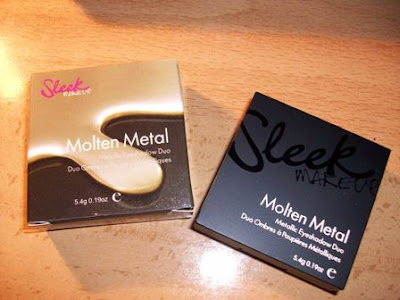 Eu pedi, unicamente, o duo de sombras cremosas douradas, o Molten Metal, da Sleek. Já tinha visto reviews sobre ele e fiquei mesmo curiosa. Isto é exageradamente luminoso e dourado, simplesmente lindo! Custou 8.50€.