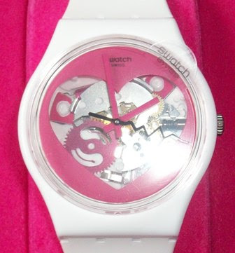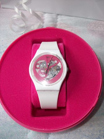 Este relógio é da nova coleção da Swatch e foi-me oferecido pelo meu namorado.