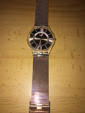 Por fim, comprei um relógio super fino, na Swatch, no tom rosa dourado. Pena não conseguir captar a cor, na foto.