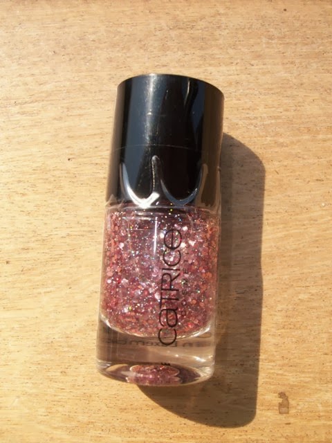 Este verniz da Catrice (45 Kitch Me If You Can) é um bom top coat para aquele efeito bola espelhada (lol). Gosto muito de o aplicar por cima de vernizes rosa, roxos, etc. Não me lembro do preço, mas é o praticável pela Wells.